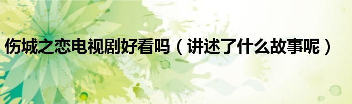 大家好,伊人来为大家解答以上问题。伤城之恋电视剧好看吗,讲述了什么故事呢很多人还不知道,现在让我们一起来看看吧!