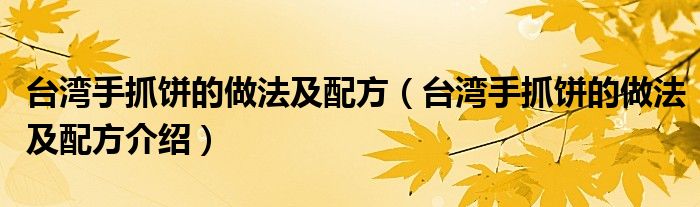 大家好,伊人来为大家解答以上问题。台湾手抓饼的做法及配方,台湾手抓饼的做法及配方介绍很多人还不知道,现在让我们一起来看看吧!