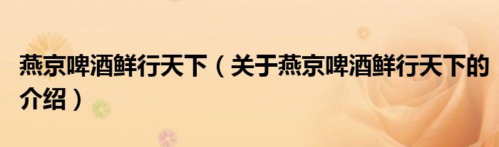 大家好,小新来为大家解答以上的问题。燕京啤酒鲜行天下,关于燕京啤酒鲜行天下的介绍很多人还不知道,现在让我们一起来看看吧!