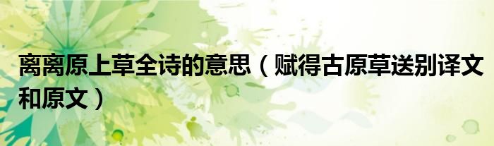 1、长草多茂盛,每年秋冬变黄,春天草厚。无情的野火只能烧枯叶,春风把大地吹绿。野花在蔓延,淹没古道,你的旅程在艳阳下的草地尽头。我再一次告别了我的知心朋友,浓浓的草代表了我的深情。