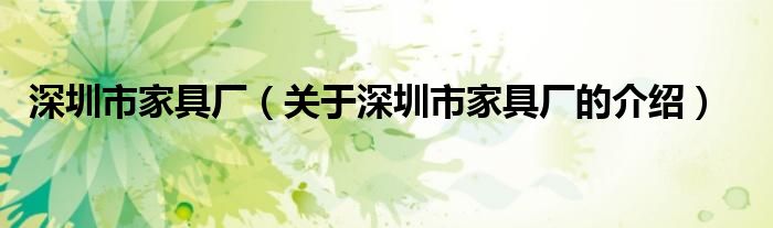 大家好,小新来为大家解答以上的问题。深圳市家具厂,关于深圳市家具厂的介绍很多人还不知道,现在让我们一起来看看吧!