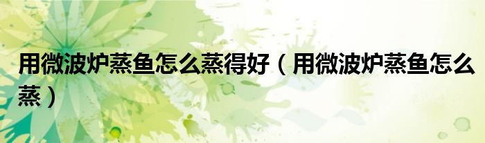 大家好,伊人来为大家解答以上问题。用微波炉蒸鱼怎么蒸得好,用微波炉蒸鱼怎么蒸很多人还不知道,现在让我们一起来看看吧!