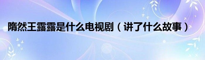 大家好,伊人来为大家解答以上问题。隋然王露露是什么电视剧,讲了什么故事很多人还不知道,现在让我们一起来看看吧!