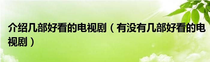 大家好,伊人来为大家解答以上问题。介绍几部好看的电视剧,有没有几部好看的电视剧很多人还不知道,现在让我们一起来看看吧!