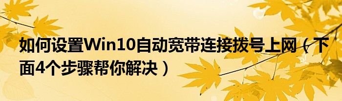 大家好,伊人来为大家解答以上问题。如何设置Win10自动宽带连接拨号上网,下面4个步骤帮你解决很多人还不知道,现在让我们一起来看看吧!