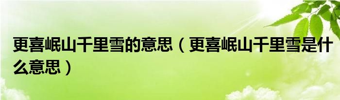 大家好,伊人来为大家解答以上问题。更喜岷山千里雪的意思,更喜岷山千里雪是什么意思很多人还不知道,现在让我们一起来看看吧!