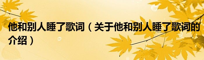 大家好,小新来为大家解答以上的问题。他和别人睡了歌词,关于他和别人睡了歌词的介绍很多人还不知道,现在让我们一起来看看吧!
