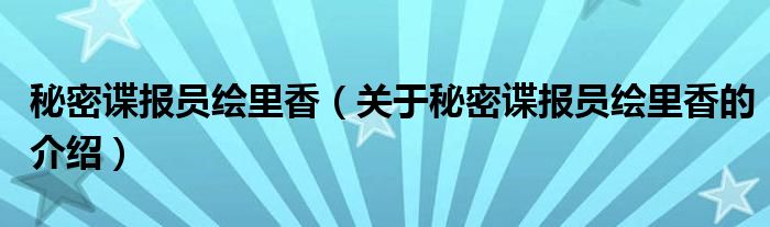 大家好,小新来为大家解答以上的问题。秘密谍报员绘里香,关于秘密谍报员绘里香的介绍很多人还不知道,现在让我们一起来看看吧!