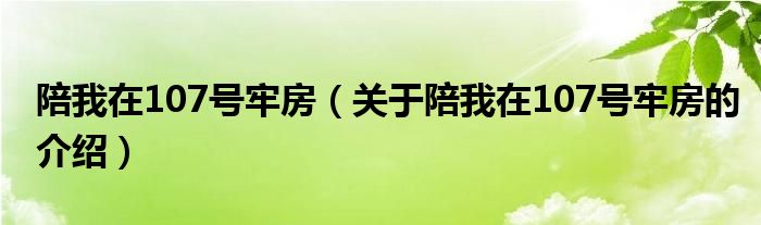 大家好,小新来为大家解答以上的问题。陪我在107号牢房,关于陪我在107号牢房的介绍很多人还不知道,现在让我们一起来看看吧!