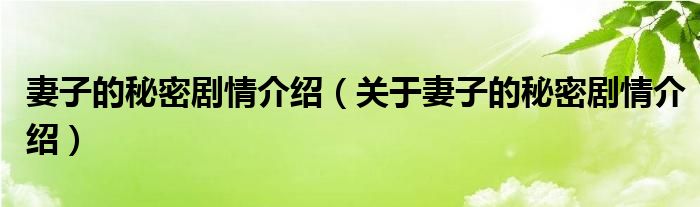 大家好,伊人来为大家解答以上问题。妻子的秘密剧情介绍,关于妻子的秘密剧情介绍很多人还不知道,现在让我们一起来看看吧!