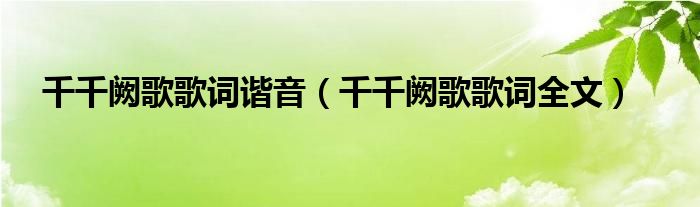 大家好,伊人来为大家解答以上问题。千千阙歌歌词谐音,千千阙歌歌词全文很多人还不知道,现在让我们一起来看看吧!