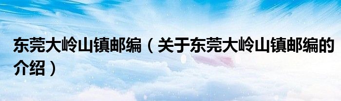 大家好,小新来为大家解答以上的问题。东莞大岭山镇邮编,关于东莞大岭山镇邮编的介绍很多人还不知道,现在让我们一起来看看吧!