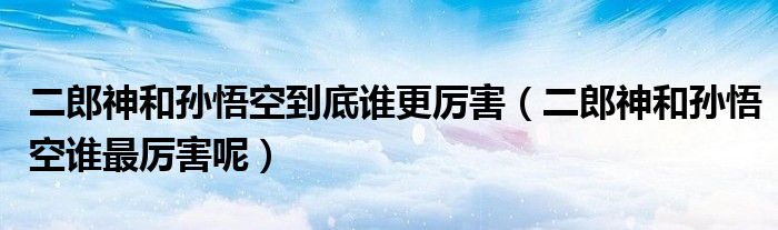 大家好,伊人来为大家解答以上问题。二郎神和孙悟空到底谁更厉害,二郎神和孙悟空谁最厉害呢很多人还不知道,现在让我们一起来看看吧!