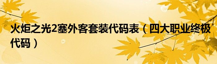 大家好,伊人来为大家解答以上问题。火炬之光2塞外客套装代码表,四大职业终极代码很多人还不知道,现在让我们一起来看看吧!
