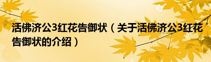 大家好,小新来为大家解答以上的问题。活佛济公3红花告御状,关于活佛济公3红花告御状的介绍很多人还不知道,现在让我们一起来看看吧!
