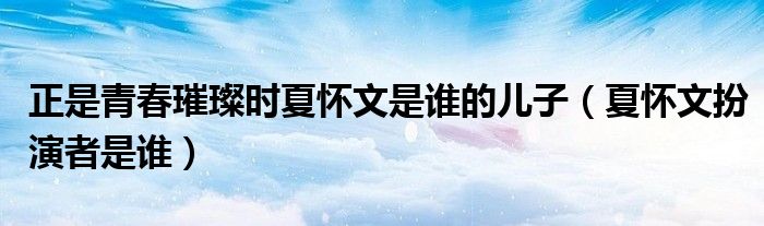 大家好,伊人来为大家解答以上问题。正是青春璀璨时夏怀文是谁的儿子,夏怀文扮演者是谁很多人还不知道,现在让我们一起来看看吧!