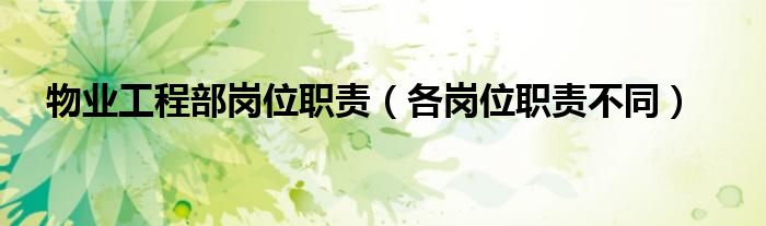 大家好,伊人来为大家解答以上问题。物业工程部岗位职责,各岗位职责不同很多人还不知道,现在让我们一起来看看吧!