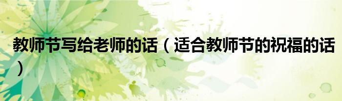 大家好,伊人来为大家解答以上问题。教师节写给老师的话,适合教师节的祝福的话很多人还不知道,现在让我们一起来看看吧!