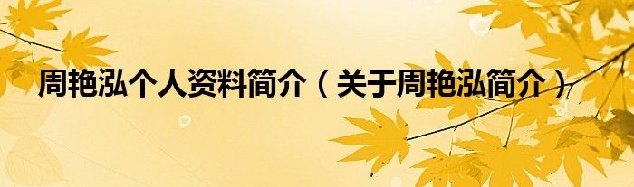 大家好,伊人来为大家解答以上问题。周艳泓个人资料简介,关于周艳泓简介很多人还不知道,现在让我们一起来看看吧!