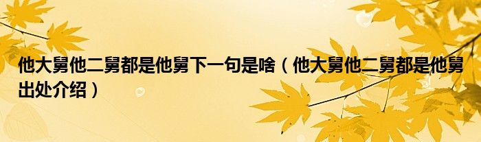 大家好,伊人来为大家解答以上问题。他大舅他二舅都是他舅下一句是啥,他大舅他二舅都是他舅出处介绍很多人还不知道,现在让我们一起来看看吧!