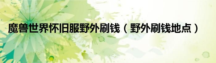 大家好,伊人来为大家解答以上问题。魔兽世界怀旧服野外刷钱,野外刷钱地点很多人还不知道,现在让我们一起来看看吧!