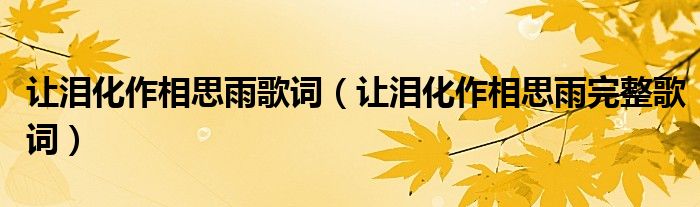 大家好,伊人来为大家解答以上问题。让泪化作相思雨歌词,让泪化作相思雨完整歌词很多人还不知道,现在让我们一起来看看吧!