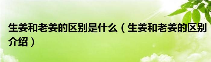 大家好,伊人来为大家解答以上问题。生姜和老姜的区别是什么,生姜和老姜的区别介绍很多人还不知道,现在让我们一起来看看吧!