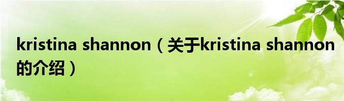 大家好,小新来为大家解答以上的问题。kristina shannon,关于kristina shannon的介绍很多人还不知道,现在让我们一起来看看吧!
