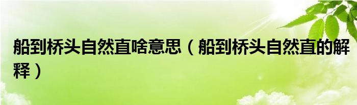 大家好,伊人来为大家解答以上问题。船到桥头自然直啥意思,船到桥头自然直的解释很多人还不知道,现在让我们一起来看看吧!