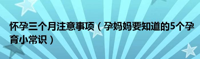 大家好,伊人来为大家解答以上问题。怀孕三个月注意事项,孕妈妈要知道的5个孕育小常识很多人还不知道,现在让我们一起来看看吧!