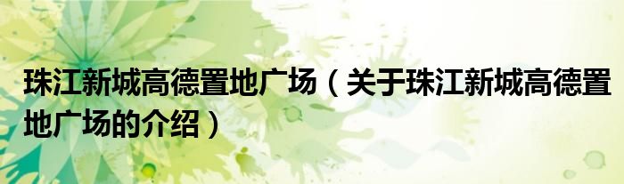 大家好,小新来为大家解答以上的问题。珠江新城高德置地广场,关于珠江新城高德置地广场的介绍很多人还不知道,现在让我们一起来看看吧!