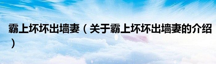 大家好,小新来为大家解答以上的问题。霸上坏坏出墙妻,关于霸上坏坏出墙妻的介绍很多人还不知道,现在让我们一起来看看吧!