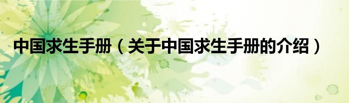 大家好,小新来为大家解答以上的问题。中国求生手册,关于中国求生手册的介绍很多人还不知道,现在让我们一起来看看吧!