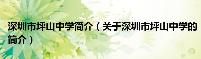 大家好,伊人来为大家解答以上问题。深圳市坪山中学简介,关于深圳市坪山中学的简介很多人还不知道,现在让我们一起来看看吧!