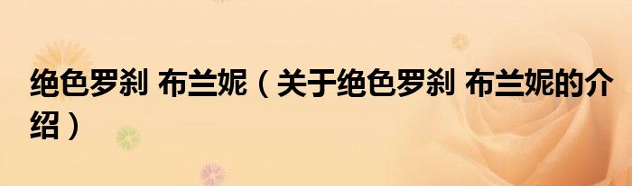 大家好,小新来为大家解答以上的问题。绝色罗刹 布兰妮,关于绝色罗刹 布兰妮的介绍很多人还不知道,现在让我们一起来看看吧!