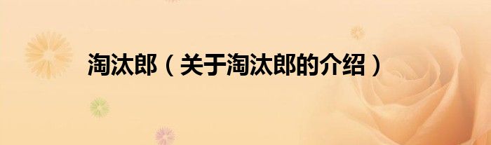 大家好,小新来为大家解答以上的问题。淘汰郎,关于淘汰郎的介绍很多人还不知道,现在让我们一起来看看吧!