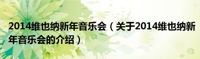 大家好,小新来为大家解答以上的问题。2014维也纳新年音乐会,关于2014维也纳新年音乐会的介绍很多人还不知道,现在让我们一起来看看吧!