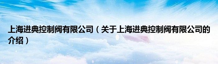 大家好,小新来为大家解答以上的问题。上海进典控制阀有限公司,关于上海进典控制阀有限公司的介绍很多人还不知道,现在让我们一起来看看吧!