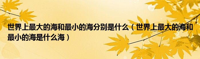 大家好,伊人来为大家解答以上问题。世界上最大的海和最小的海分别是什么,世界上最大的海和最小的海是什么海很多人还不知道,现在让我们一起来看看吧!