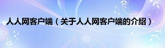 大家好,小新来为大家解答以上的问题。人人网客户端,关于人人网客户端的介绍很多人还不知道,现在让我们一起来看看吧!