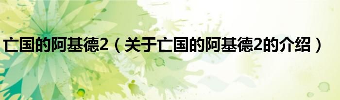 大家好,小新来为大家解答以上的问题。亡国的阿基德2,关于亡国的阿基德2的介绍很多人还不知道,现在让我们一起来看看吧!