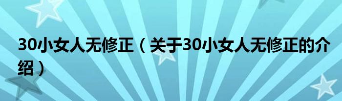 大家好,小新来为大家解答以上的问题。30小女人无修正,关于30小女人无修正的介绍很多人还不知道,现在让我们一起来看看吧!