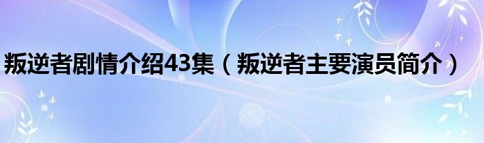 大家好,伊人来为大家解答以上问题。叛逆者剧情介绍43集,叛逆者主要演员简介很多人还不知道,现在让我们一起来看看吧!