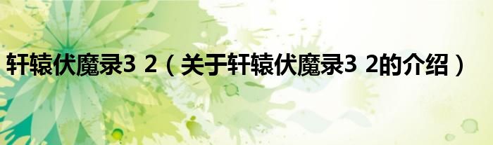 大家好,小新来为大家解答以上的问题。轩辕伏魔录3 2,关于轩辕伏魔录3 2的介绍很多人还不知道,现在让我们一起来看看吧!
