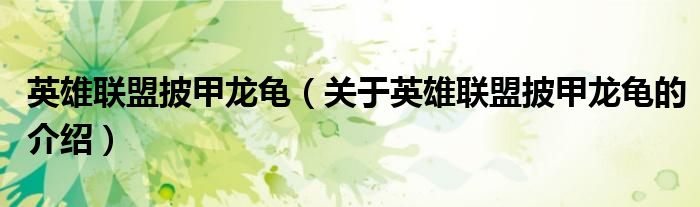 大家好,小新来为大家解答以上的问题。英雄联盟披甲龙龟,关于英雄联盟披甲龙龟的介绍很多人还不知道,现在让我们一起来看看吧!