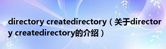 大家好,小新来为大家解答以上的问题。directory createdirectory,关于directory createdirectory的介绍很多人还不知道,现在让我们一起来看看吧!