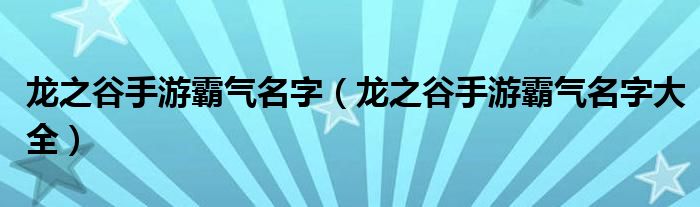 大家好,伊人来为大家解答以上问题。龙之谷手游霸气名字,龙之谷手游霸气名字大全很多人还不知道,现在让我们一起来看看吧!