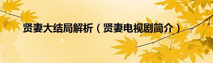 大家好,伊人来为大家解答以上问题。贤妻大结局解析,贤妻电视剧简介很多人还不知道,现在让我们一起来看看吧!