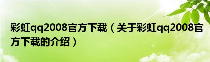 大家好,小新来为大家解答以上的问题。彩虹qq2008官方下载,关于彩虹qq2008官方下载的介绍很多人还不知道,现在让我们一起来看看吧!