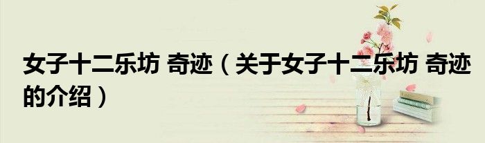 大家好,小新来为大家解答以上的问题。女子十二乐坊 奇迹,关于女子十二乐坊 奇迹的介绍很多人还不知道,现在让我们一起来看看吧!